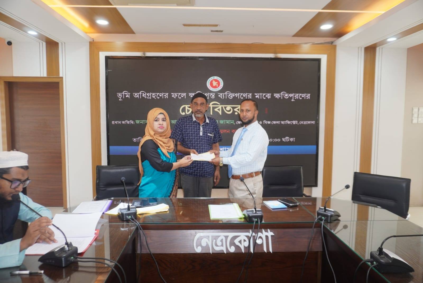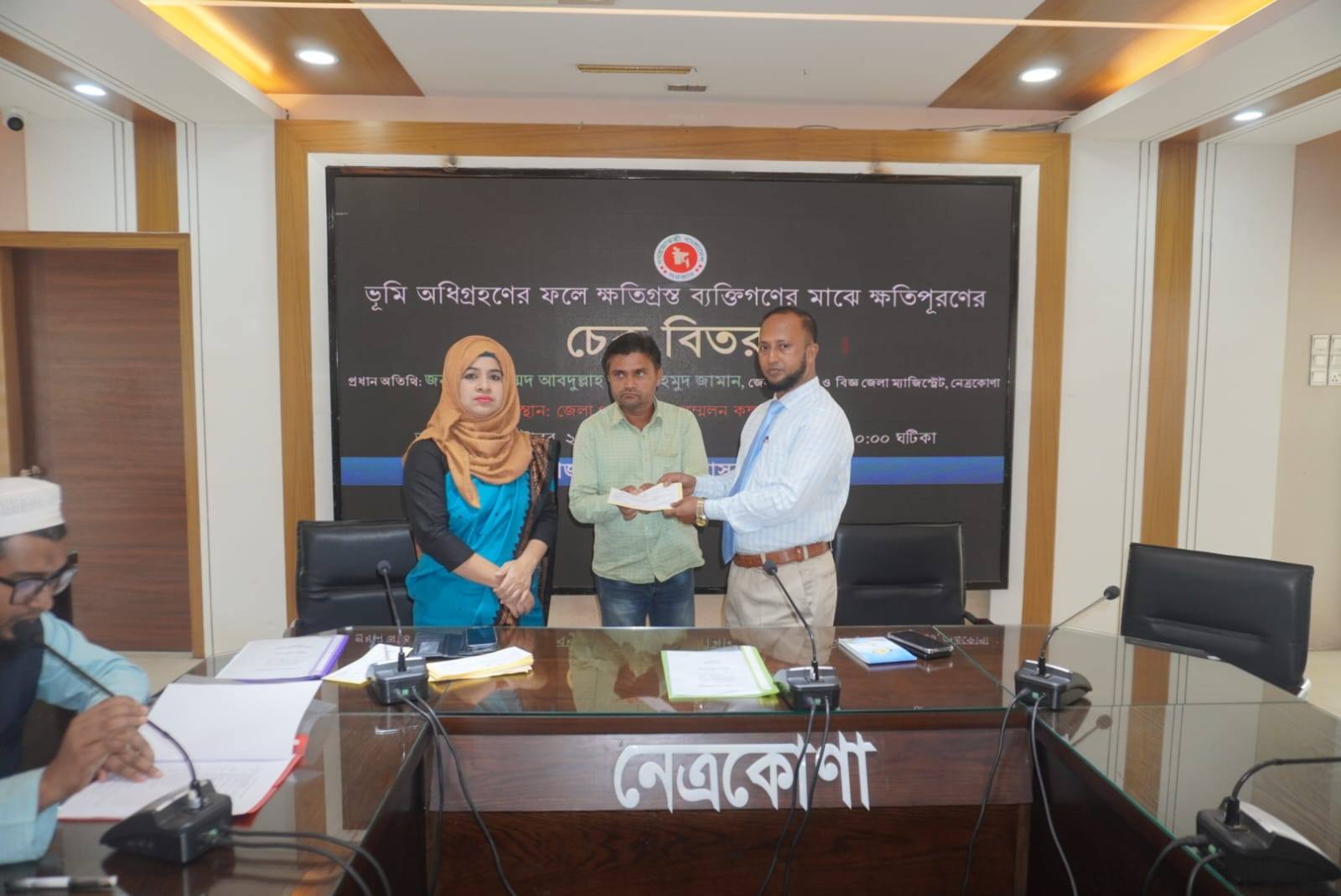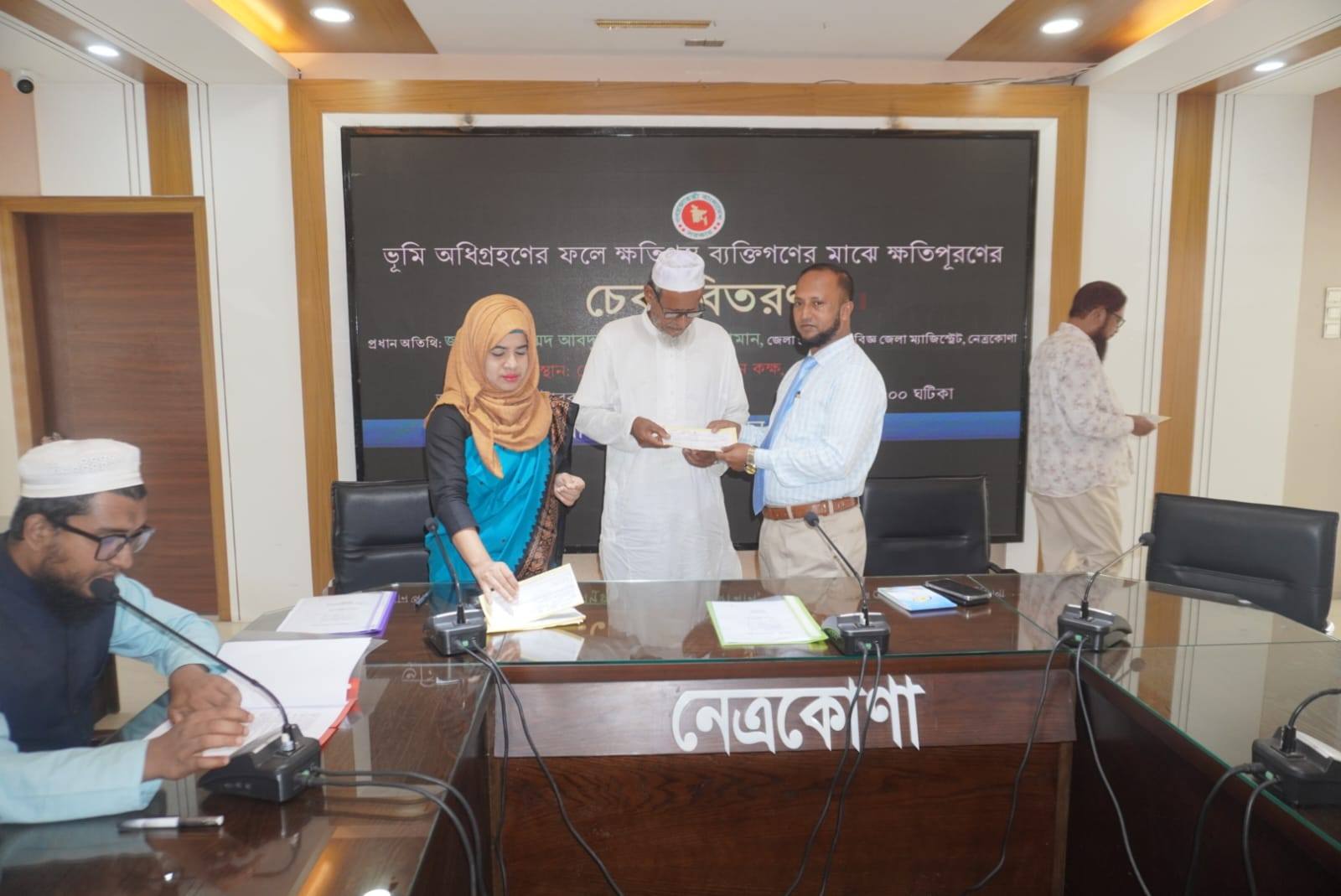আজ জেলা প্রশাসক, নেত্রকোণা জনাব আবদুল্লাহ আল মাহমুদ জামান বিভিন্ন এল, এ কেসের মাধ্যমে অধিগ্রহণকৃত ভূমির ৩৩ জন মালিকের মধ্যে ২ কোটি ২০ লক্ষ ৮৬ হাজার ৬২৬ টাকার চেক বিতরণ করেন। এ সময় উপস্থিত ছিলেন অতিরিক্ত জেলা প্রশাসক ( রাজস্ব) মুন মুন জাহান লিজা